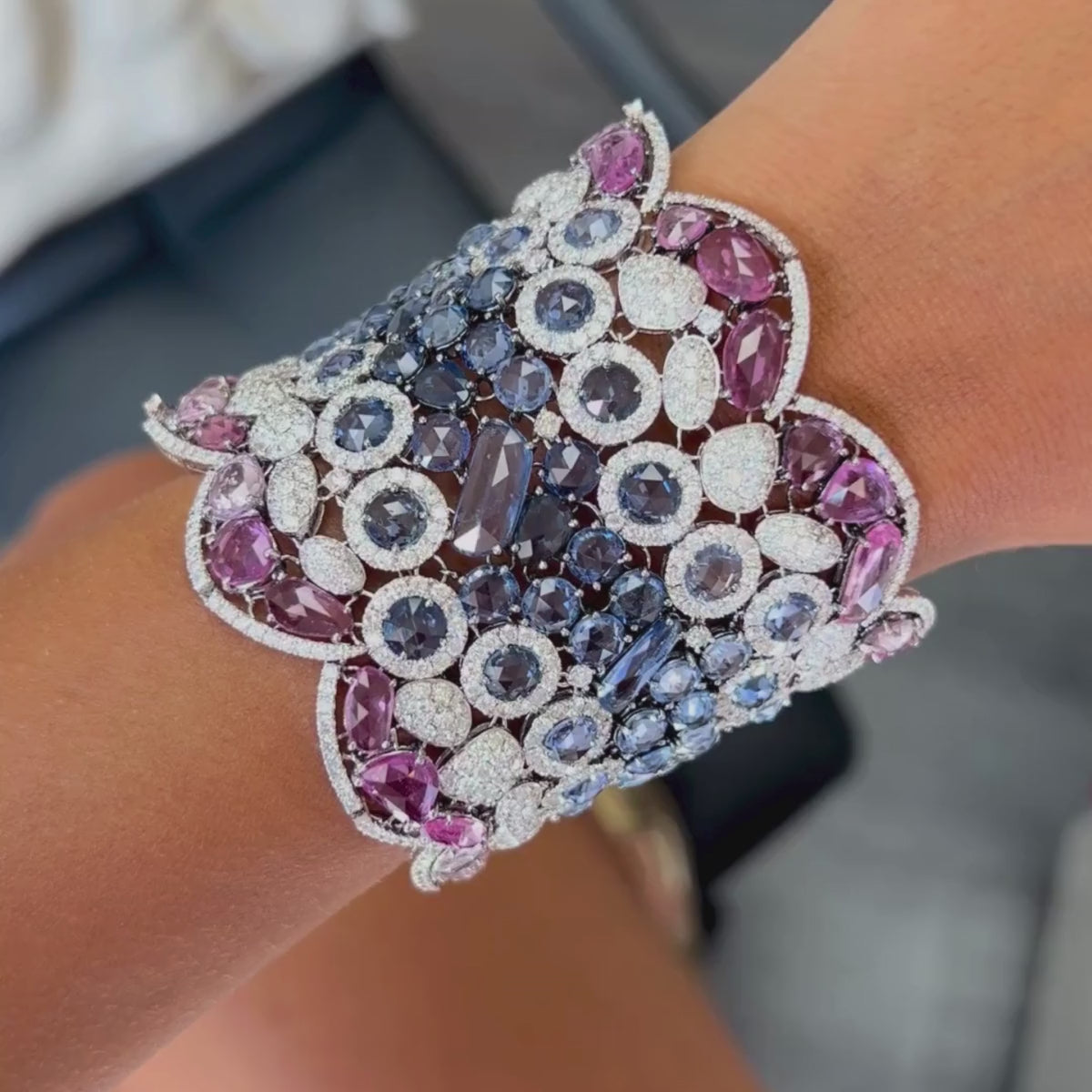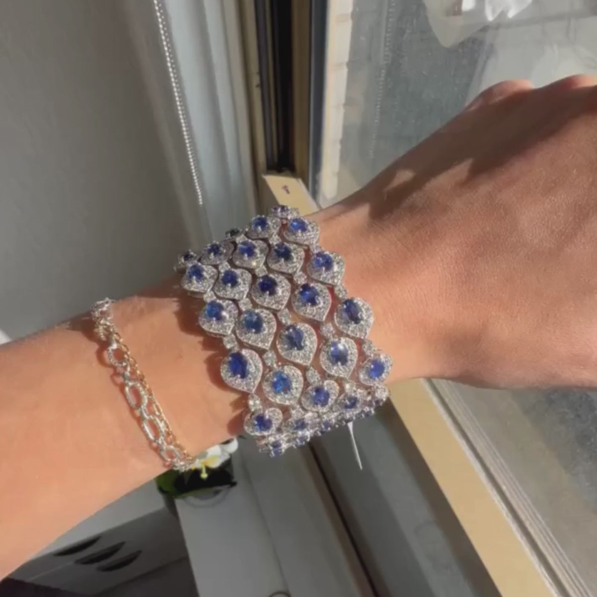 10.65cts Oval Sapphire Diamond Halo Bracelet