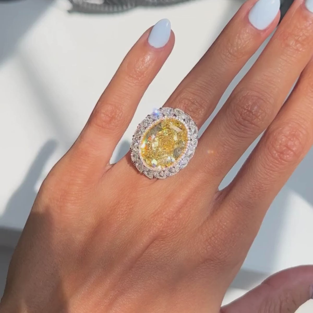 - 16.30cts of fancy intense yellow oval cut diamond (FIY VS2)