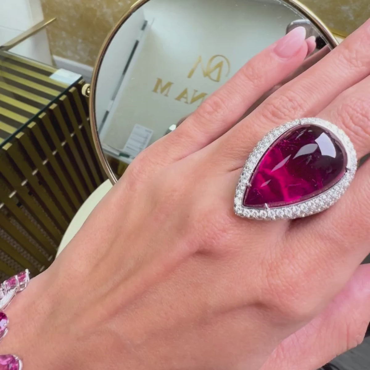 - 36.08cts pear shaped cabochon cut pink tourmaline (purplish red)