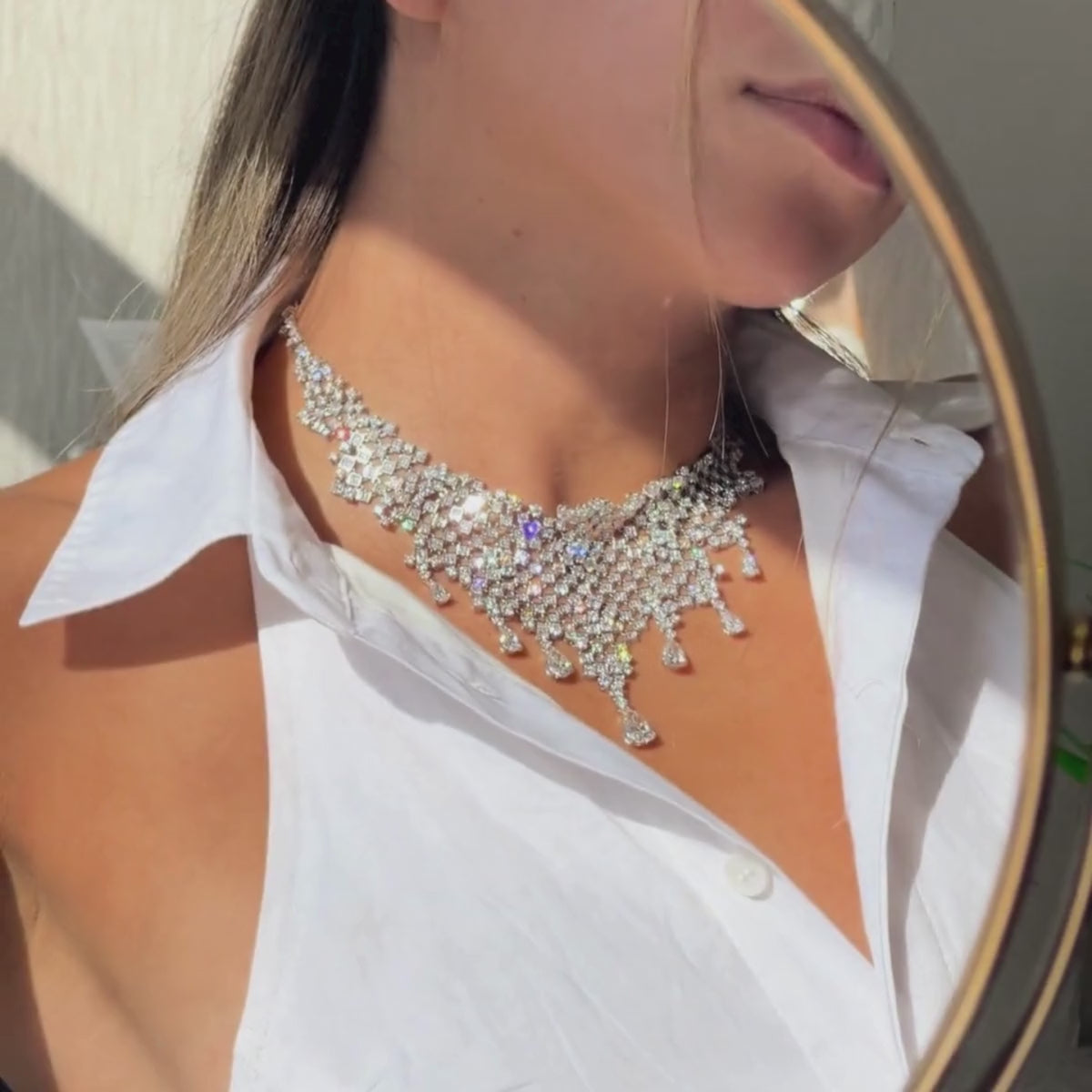 18kt White Gold Diamond Mesh Hanging Necklace: