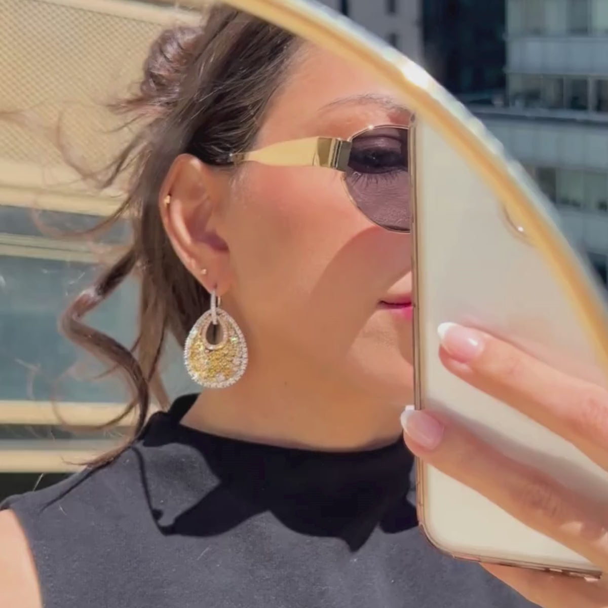 18kt Triple Tone Diamond Oval Drop Open Work Earring:
