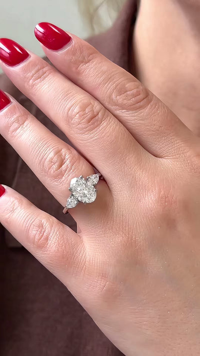 Lab Grown Oval Diamond Ring with Pears On Side
