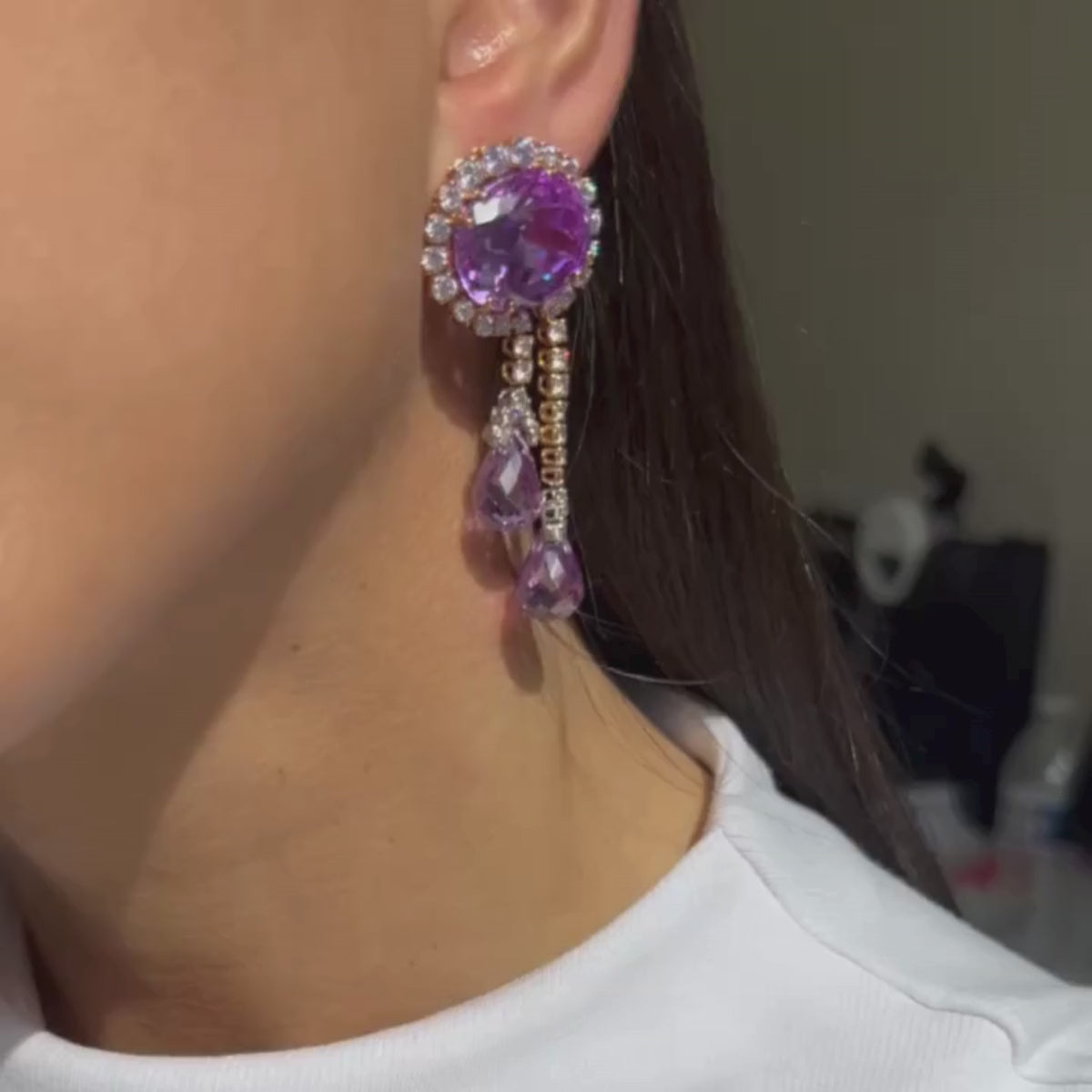 Purple-ish Pink Quartz Diamond Halo Earring